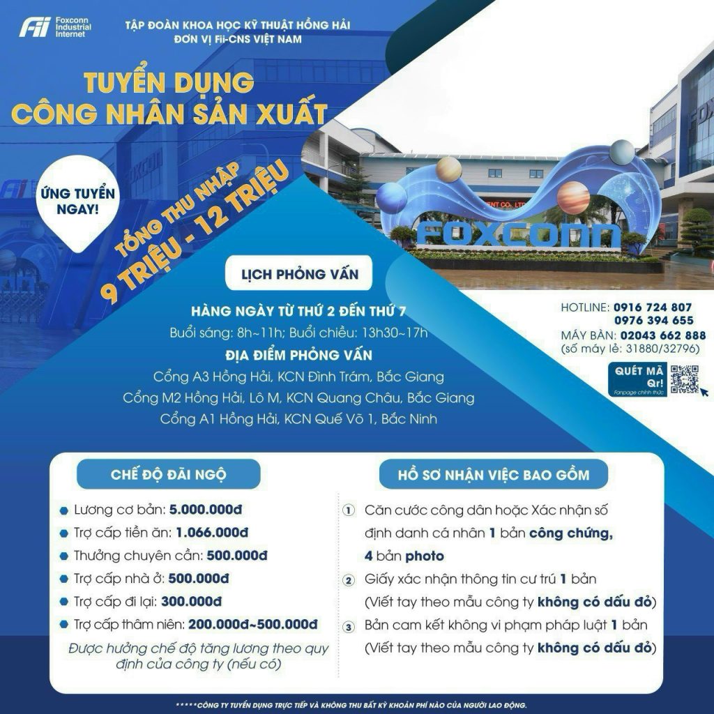 • Sức khỏe tốt, có thể làm việc trong môi trường nhà máy